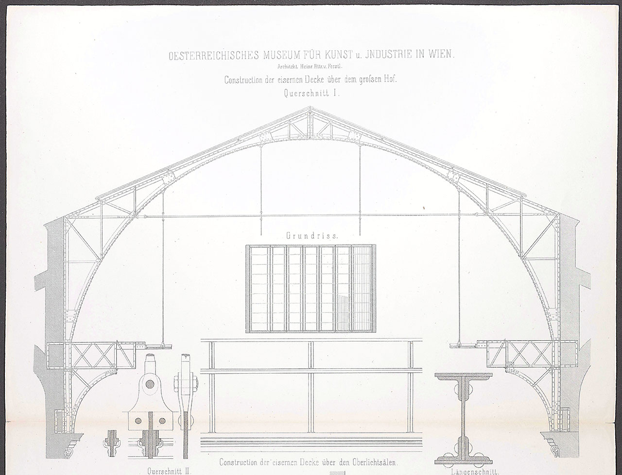 - Heinrich von Ferstel, Construction der eisernen Decke über dem großen Hof, in Allgemeine Bauzeitung, Wien, 1881 © MAK