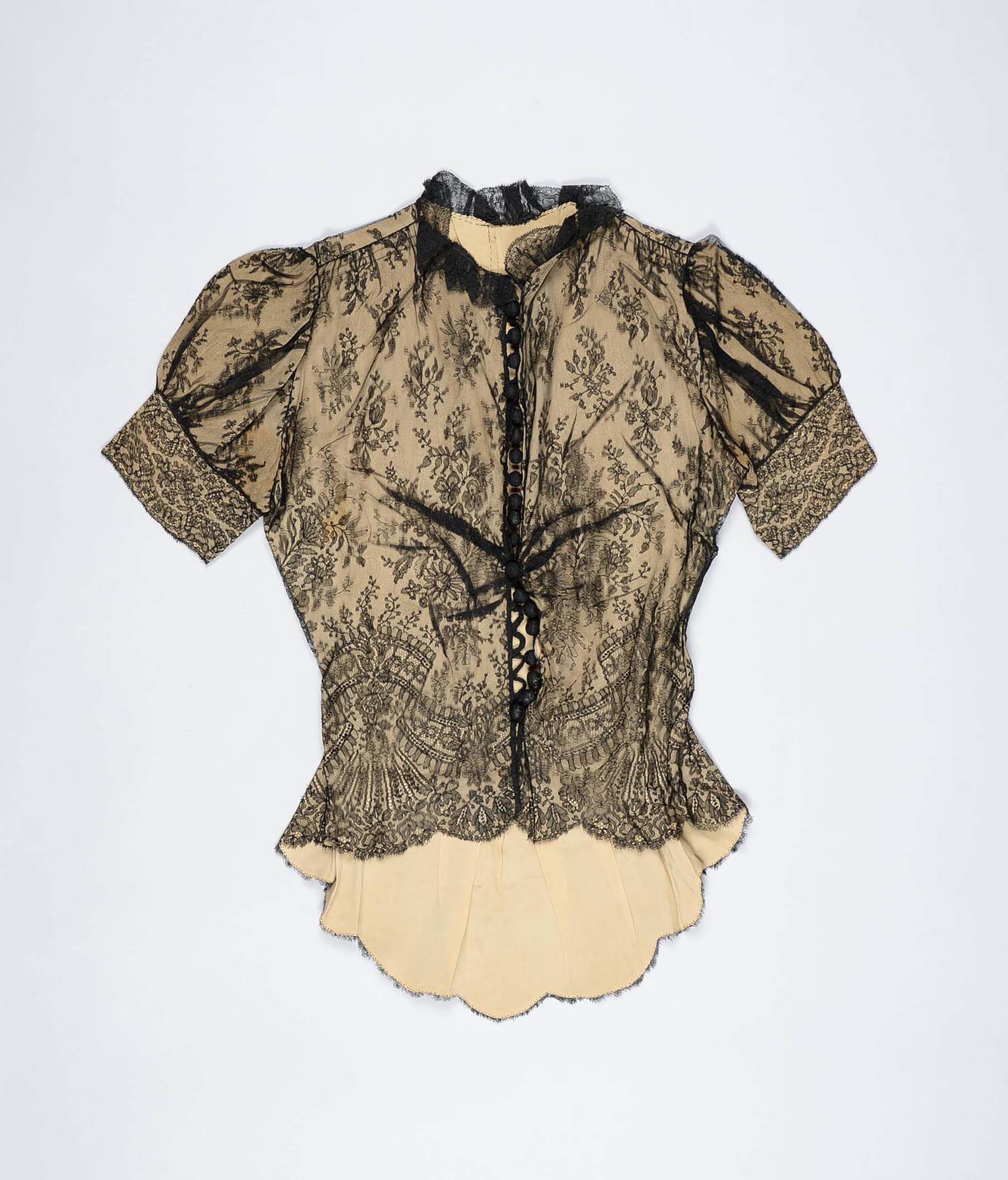 - Objekt aus einer Schenkung des THE BERNARD RUDOFSKY ESTATE: handgenähte Bluse aus schwarzer Chantillyspitze auf beigem Seidenfutter, um 1940 © MAK/Branislav Djordjevic