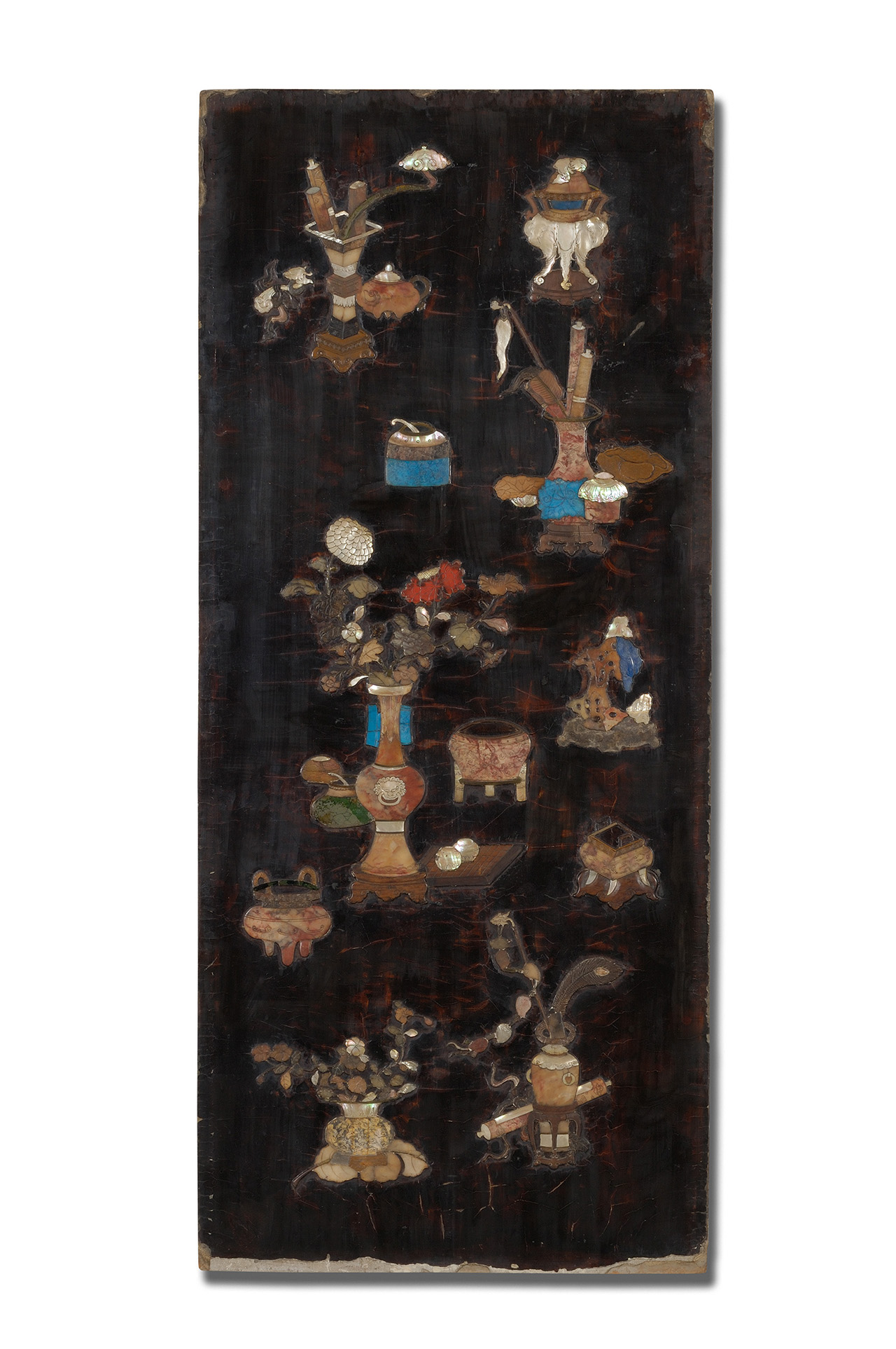 - Lacktafel mit Darstellungen kostbarer Gefäße, Ming-Dynastie (1368–1644) Holz, lackiert mit Einlegearbeiten aus Halbedelsteinen MAK-Sammlung © MAK/Georg Mayer
