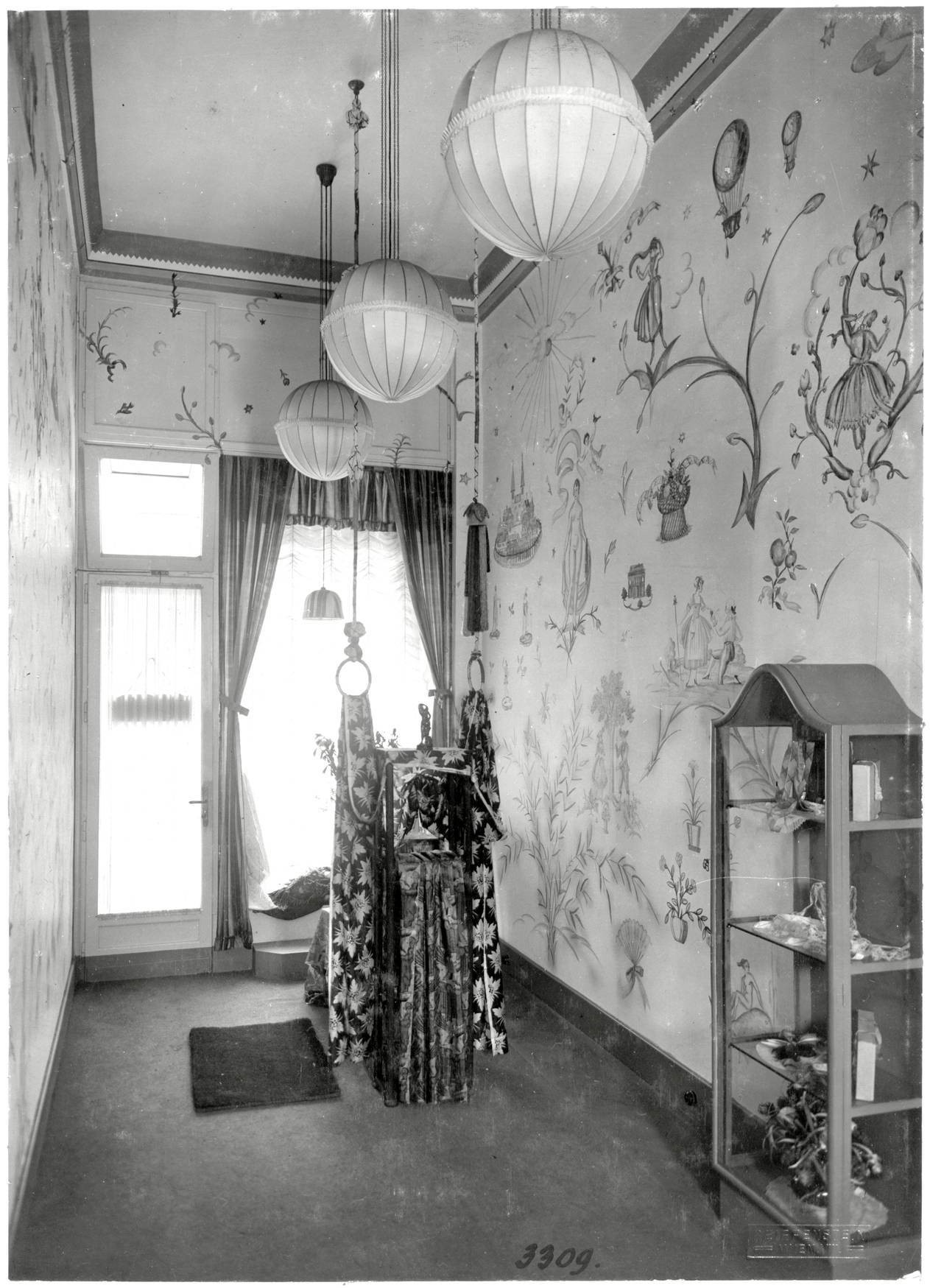 - Fritzi Löw mit Lotte Calm, Lilly Jacobsen, Reni Schaschl, Anny Schröder und Vally Wieselthier, Wandmalereien im Entree des WW-Verkaufslokals Kärntner Straße 32, 1918 © MAK