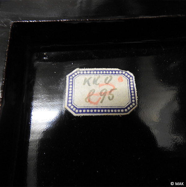 Laut einer Notiz im MAK-Inventar war der Spieltisch für das „Führermuseum“ in Linz bestimmt. Am Tisch befindet sich ein Aufkleber mit der Nummer „KKU 895“ – für „Kremsmünster Kunstgewerbe 895“.