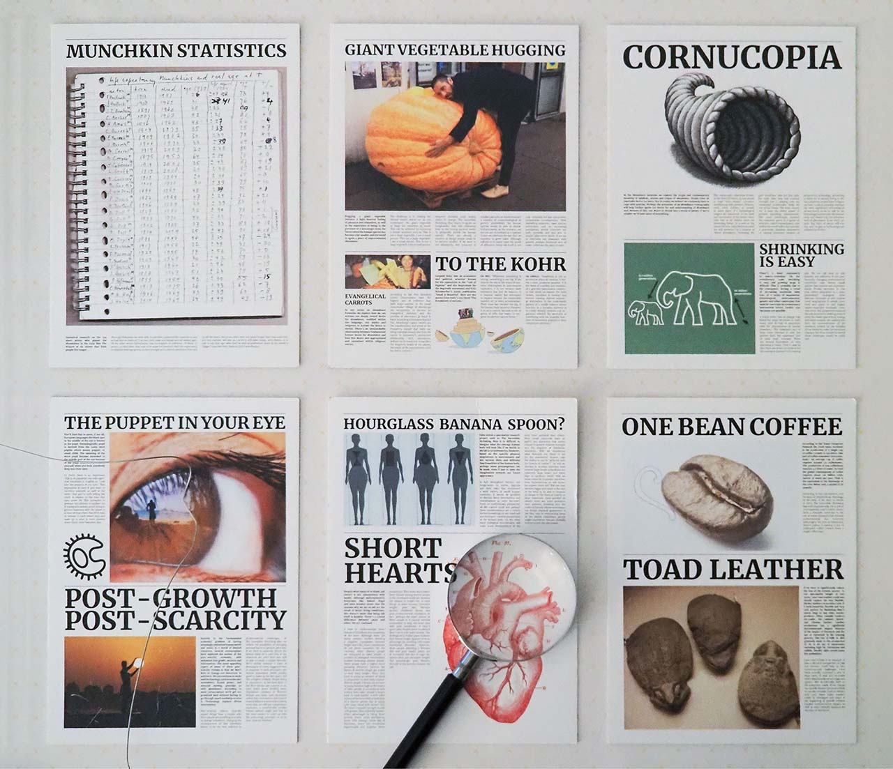 Eine dieser Arbeiten ist the incredible shrinkingman (seit 2010) von Arne Hendriks. Der Künstler dokumentiert mit dem spekulativen Projekt seine jahrelange Recherche, welche Vorteile es für den Planeten hätte, wenn alle Menschen durchschnittlich 50 cm groß wären. Lebenswichtige Ressourcen wie Energie, Nahrung und Wohnfläche wären bereits heute für alle Menschen mehr als ausreichend vorhanden, da jede*r nur ungefähr 2% von dem, was wir bisher verbrauchen, benötigen würde. Dabei sind die Beispiele und Details seiner Forschung überaus faszinierend und die Lösung für nahezu alle Probleme erscheint greifbar.