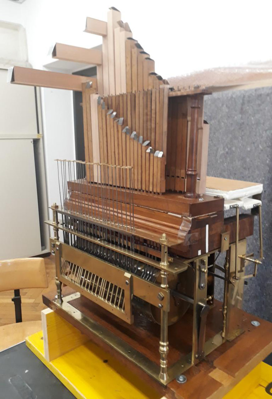 - Das fertig restaurierte Flötenwerk wartet auf die Harfenrekonstruktion © Marianne Siegl/MAK