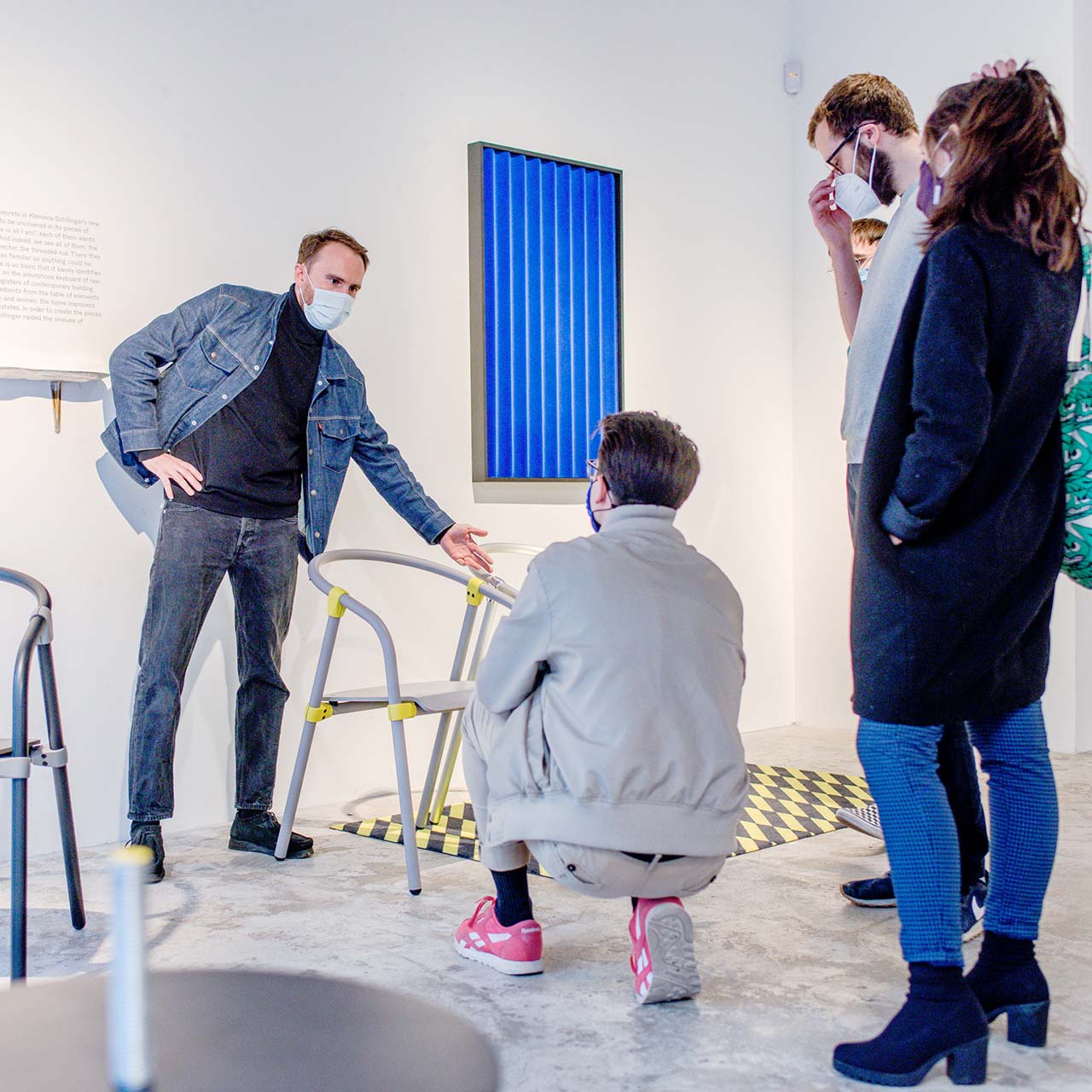Die Eröffnung fand nicht wie üblich abends sondern den ganzen Nachmittag statt und bot die Möglichkeit, den Besucher*innen die Ausstellung in kleinen Gruppen zu vermitteln. Trotz der Kontaktbeschränkung werde ich die Ausstellung in guter Erinnerung behalten. Zu meiner Freude wurden auch zwei Objekte der Ausstellung für die MAK-Sammlung angekauft, der M24 Table (2020) und der Tube Chair (2020). Beides Arbeiten, die ihren Ursprung im ersten Lockdown hatten. Also „No Hard Feelings 2020“.