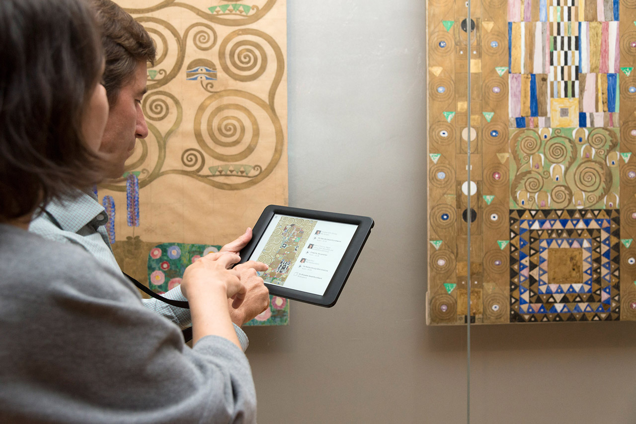 Gabriele Fabiankowitsch: Moderne Technologien stellen eine Bereicherung für die Kunstvermittlung dar. Das MAK hat beispielsweise zu den Schausammlungsbereichen Wien 1900Asien und Teppiche eine App für Tablets entwickelt. Sie bietet Zusatzinformationen, die in einem Textheft oder in Form von Objektbeschriftungen nicht gegeben werden können. Internetbasierte Inhalte kommen vor allem bei jungen Zielgruppen gut an. Obwohl sie direkt vor dem Original im MAK stehen, sehen sich Kinder und Jugendliche etwa die Gustav Klimts Entwurfszeichnungen für den Mosaikfries im Speisesaal des Brüsseler Palais Stoclet parallel am Tablet an. Sie erhalten so auch weiterführende Informationen – beispielsweise ein Bild des originalen Speisezimmers. Diese Daten kann ich allerdings überall abrufen. Das Original kann ich nur im Museum erleben. Auch zusätzliche Fragen können nur direkt mit den Kunstvermittlern diskutiert werden. Ich bin der Meinung, dass die Vorteile beider Welten – klassische und multimediale Vermittlung – ­kombiniert werden müssen.