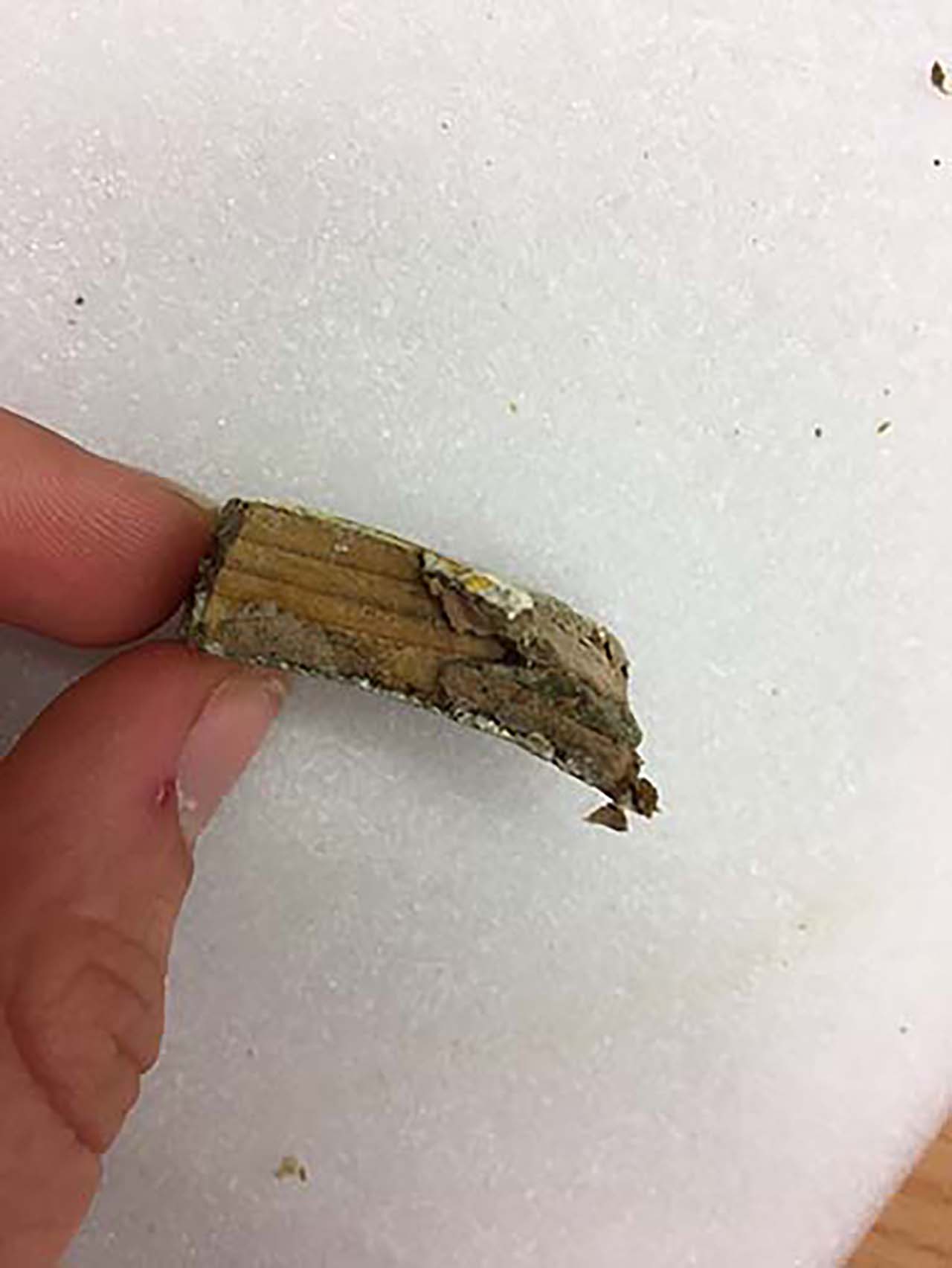 Antonia Haunolder stellte während dieser Maßnahme fest, dass sich innerhalb der Kittung ein großes Holzfragment befand, das vermutlich zur Stabilisierung eingefügt wurde und eine Seltenheit darstellt.
