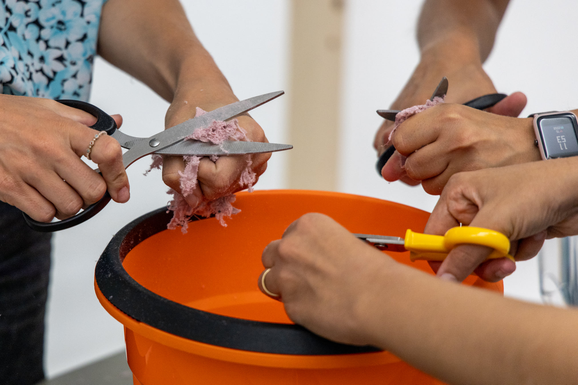 For this year’s Porto Design Biennale toxic textiles were in the center of our investigations. Together with citizens from Porto we gathered plastic garments from homes, fashion stores and second hand shops across town in order to captivate their microfibres in a performative disassembly procedure.