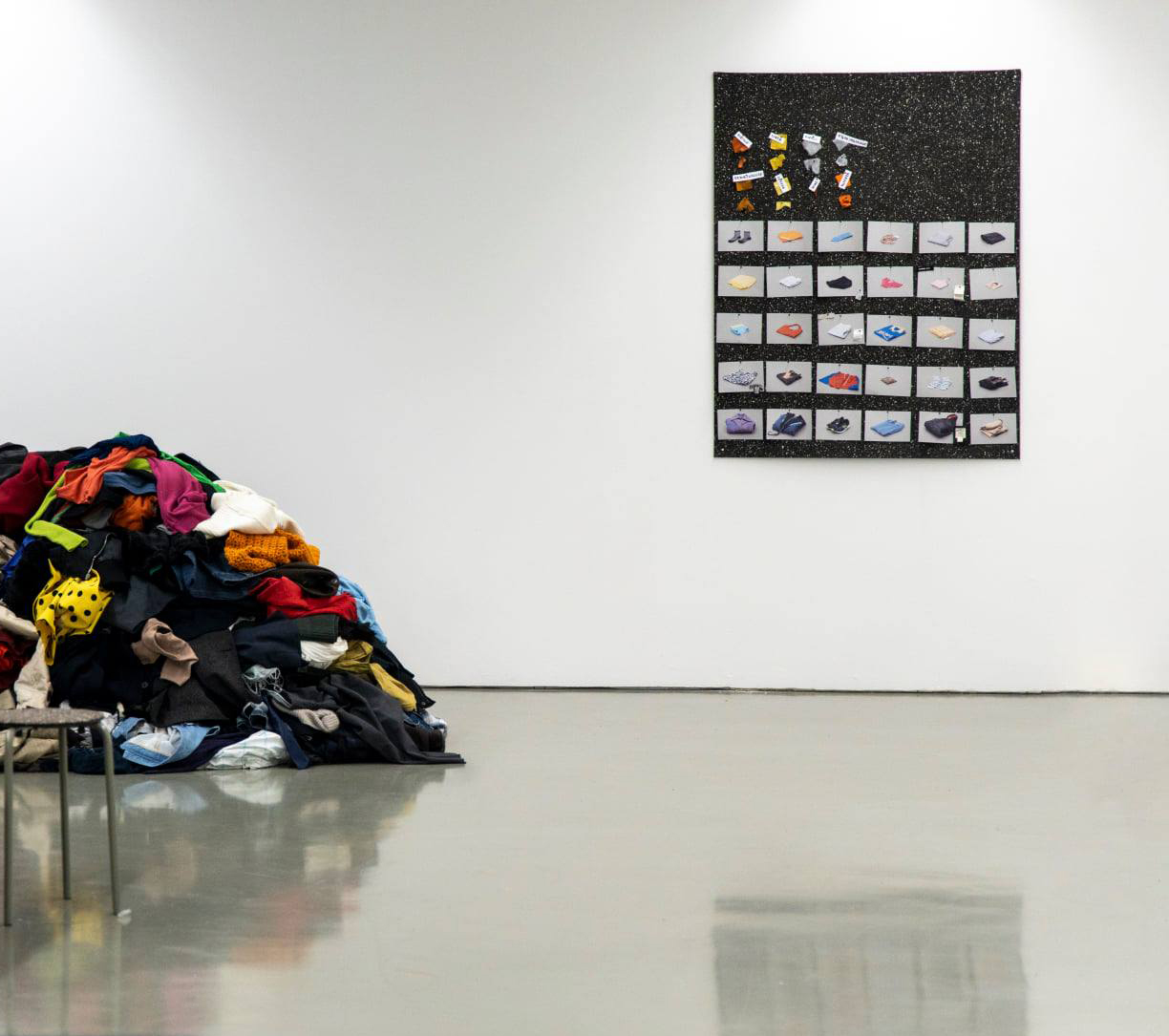 - Alexandra Fruhstorfer and Seçil Uğur Yavuz, Pile of garments and at workshop “Captivating the Fibresphere”, 2021 © Fernando Miranda