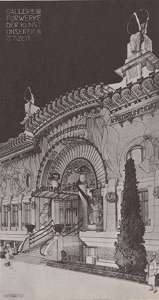 - OTTO WAGNER – JOSEF HOFFMANN Vom Nutzen und Wirken der Architektur Otto Wagner, Moderne Galerie am Stubenring, 1899, Fassadenentwurf, in: Einige Entwürfe und Skizzen …, 1900 Josef Hoffmann Museum, Brtnice © MAK/Georg Mayer