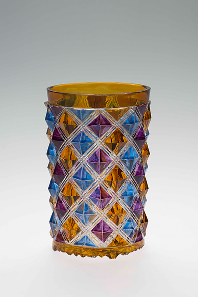 - GLÄSER DER EMPIRE- UND BIEDERMEIERZEIT Aus der Sammlung des MAK und der Glassammlung Christian Kuhn Becher mit Lasur auf Spitzsteinen Böhmen, um 1830 © MAK/Kristina Wissik