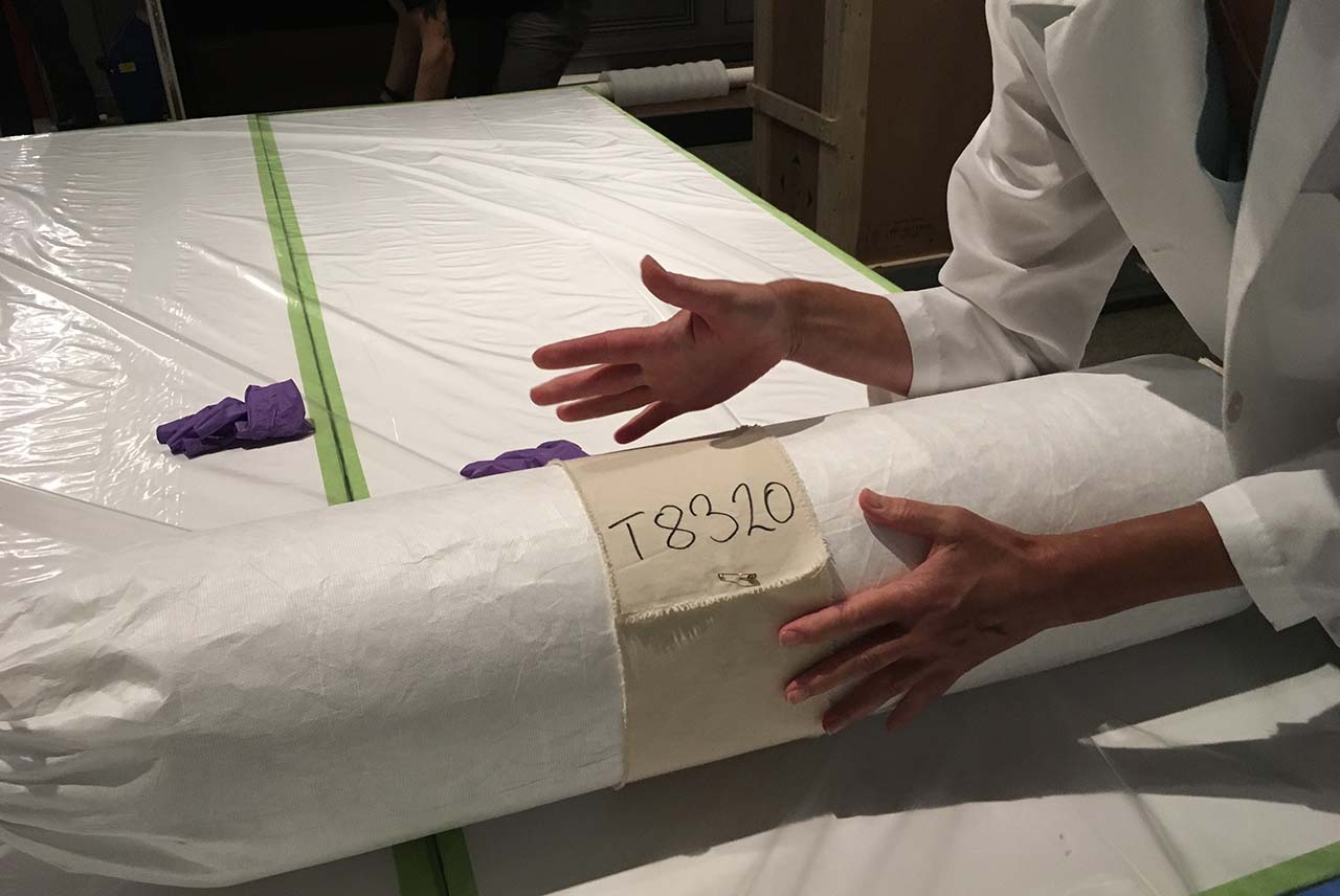 Bevor Sammlungsobjekte in Begleitung eines Kuriers das Haus verlassen dürfen, werden auch der Transport, die Spedition, die Verpackung der Kunstwerke und der Versicherungswert festgelegt. Im Falle einer internationalen Leihgabe muss die Ausfuhr der Sammlungsobjekte außerdem vom Bundesdenkmalamt genehmigt werden. Die Restaurierung erstellt vor dem Verpacken gemeinsam mit der Sammlungsleitung ein Zustandsprotokoll, in dem der momentane Zustand der Objekte festgehalten wird. „Die vier Savonnerie-Paraventpaneele wurden gerollt in Kisten gegeben, der Kaminschirm flachliegend in einer Kiste verpackt“, schildert Martina Dax, Mitarbeiterin der MAK-Sammlung Textilien und Teppiche, die als Kurier die Objekte nach Versailles begleitete.