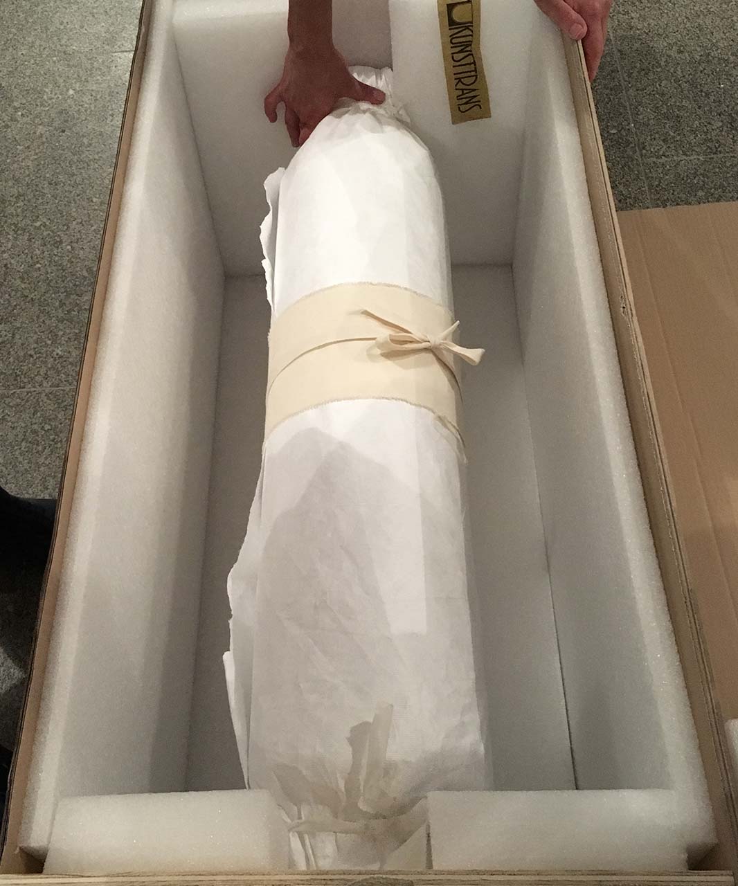 „Generell werden die Objekte sehr knapp vor Ausstellungsbeginn angeliefert, um sie unter anderem vor zu starkem Lichteinfluss während des Aufbaus der Ausstellung zu schützen. Bevor sie aus den Kisten genommen werden, müssen sie circa 24 Stunden vor Ort klimatisiert werden, um Schäden, die durch zu große Temperatur- und Feuchtigkeitsunterschiede entstehen könnten, zu vermeiden. Die Klimatisierung wird ebenfalls vom Kurier kontrolliert. Anschließend werden die Objekte aus den Kisten genommen und vom Kurier auf Schäden überprüft. Die Übernahme der Objekte wird dann mittels Zustandsprotokoll im Beisein der LeihnehmerInnen und des MAK-Kuriers bestätigt“, schildert Schneeweiss.