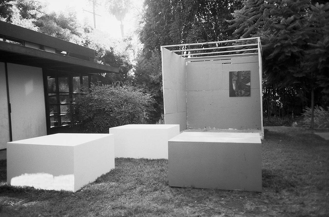 Alle Arbeiten, die ich nach 1998 geschaffen habe, wären wahrscheinlich anders oder andere, hätte ich nicht 1997 und 1998 in Los Angeles gelebt. Ich war schon 1997 Gaststudent am Arts Center, Pasadena, Kalifornien, wo ich bei Künstlern wie Stephen Prina, Chris Williams und Mike Kelley studieren durfte. Da ich nur beschränkte finanzielle Mittel hatte, wohnte ich die fast vier Monate bei verschiedenen Freund*innen und wiederum deren Freund*innen. Couchsurfing und Housesitting. So lernte ich viele verschiedene Ecken dieser Megapolis Los Angeles sehr gut kennen. Ich war damals auch öfter bei Veranstaltungen im MAK Center und den Mackey Apartments. In diesen Monaten sah ich einige weitere Schindler- und Neutra-Bauten, auch von innen. Ich lernte die kalifornische Moderne ziemlich gut kennen. So kam ich, wie wahrscheinlich nur wenige Schindler-Stipendiat*innen, schon ein Jahr vor meiner Zeit im MAK Center LA mit der Stadt, der Architektur und der Kunstszene in Berührung. Ich hatte bereits Freund*innen und ein eigenes kleines Netzwerk in der Stadt. Die von mir kuratierte Ausstellung Garage 1998 in der Garage der Mackey Apartments wäre ohne die Hilfe dieser Freund*innen vor Ort nicht möglich gewesen. Allen voran Tom Simpson, mit dem ich noch immer eng befreundet bin und der damals als Assistent für Chris Williams arbeitete.