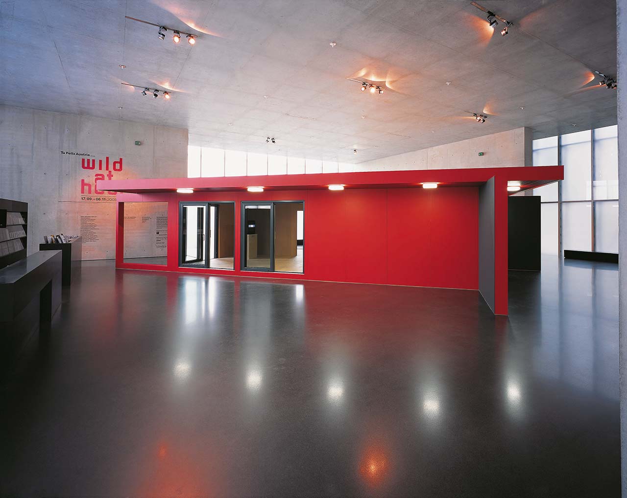 - Lulić House „No. 1 (Weekend Utopia)“, 2005 Fertigteilhaus (angefertigt von by Oa-sys), Installationsansicht Kunsthaus Bregenz, 2005 Courtesy Kunsthaus Bregenz und der Künstler © Markus Tretter