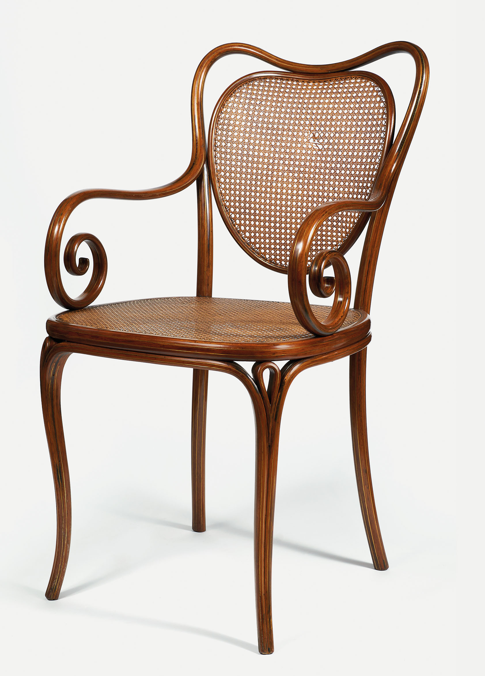 - Fauteuil, präsentiert auf der Weltausstellung 1851 in London Entwurf: Michael Thonet, Wien, 1850; Ausführung: Michael Thonet, Wien, Werkstatt Gumpendorf, ab ca. 1851; Palisander, stab-/schichtverleimt, Messingstreifen, Geflecht; Firmensammlung Company Collection TON © Wolfgang Thillmann