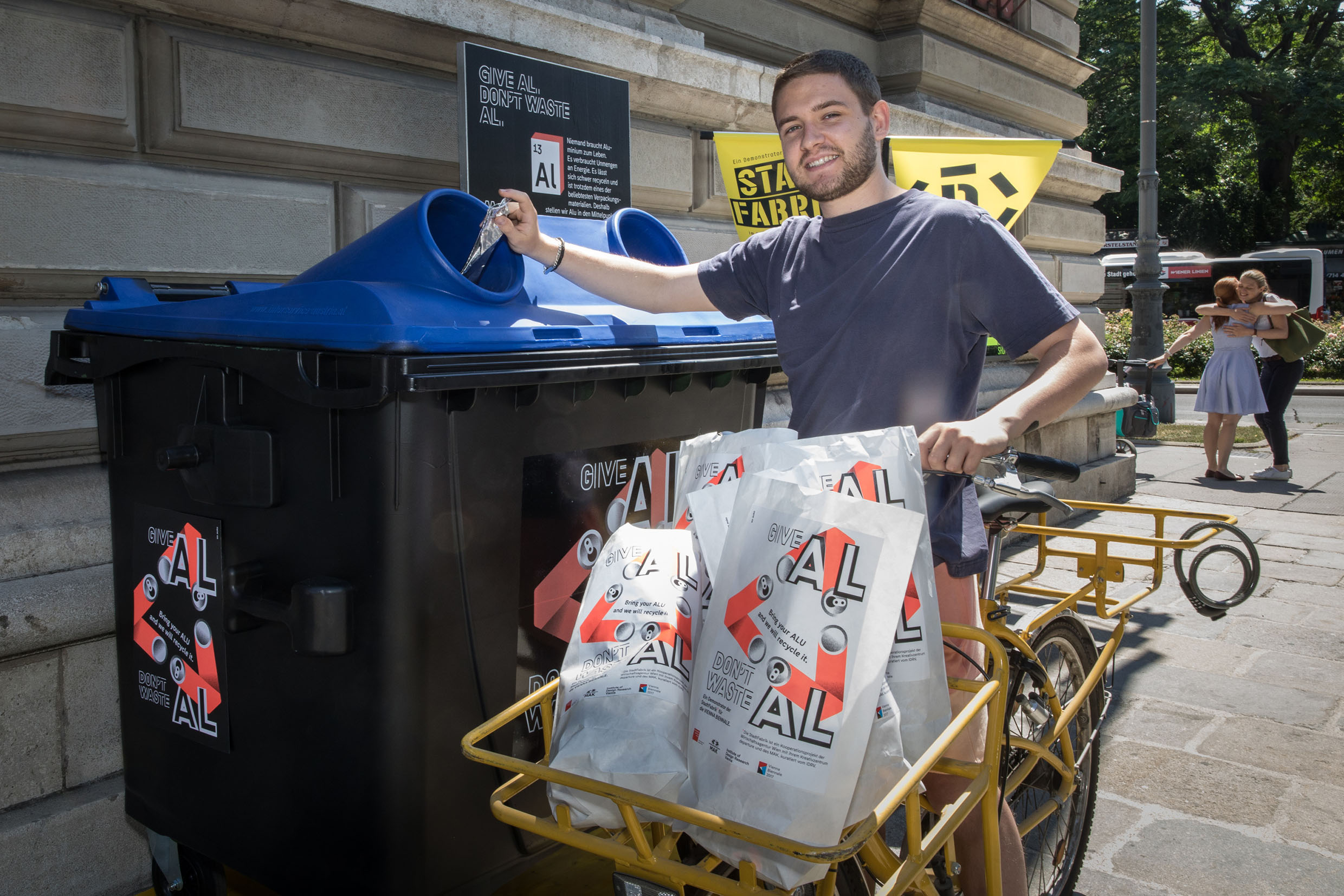 Eine andere Ressource, die massenhaft in unserem Alltag vorkommt, ist Aluminium aus Verpackungen. Unter dem Titel Give Al. Don’t waste Al hat die Agentur WeMake mit den Mitteln des Designs eine Sammel- und Sensibilisierungskampagne entwickelt. In Kooperation mit der Montanuniversität Leoben bietet sich die einmalige Gelegenheit, das Einschmelzen des gesammelten Aluminiums mitten in der Stadt zu erleben. Auch so kann „Urban Mining“ gehen (Grüngasse 27, 1050 Wien: 22. – 24.9.2017, jeweils 16:00–19:00 Uhr).
