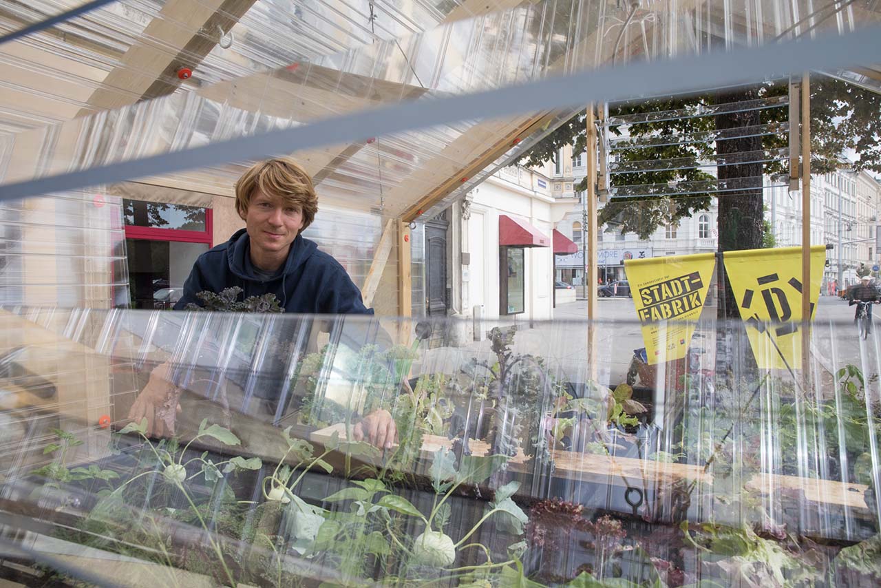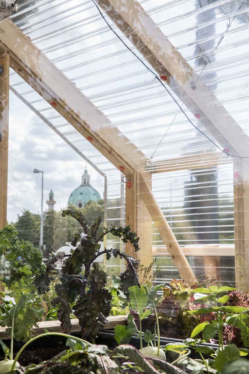 Gemeinsam mit der Wirtschaftsagentur Wien und ihrem Kreativzentrum departure haben wir uns in einem Call im Frühjahr 2017 auf die Suche nach herausragenden Projekten für 1:1-Versuchsanordnungen der Stadt gemacht. Die junge Designszene brodelt – auch im Bereich nachhaltige Arbeit. Unter den zahlreichen Ideen, die uns im Rahmen dieses Wettbewerbs begegnet sind, hat uns unter anderem das Projekt Urban Oasis des Architekten Markus Jeschaunig überzeugt. Er nutzt die warme, sonst ungenutzte Abluft von U-Bahn-Anlagen und schafft in einem doppelwandigen Gewächshaus ein Mikroklima für ganzjährige Landwirtschaft (Friedrichstr. 3, 1010 Wien: 15. – 24.9. 2017, täglich 0–24 Uhr).