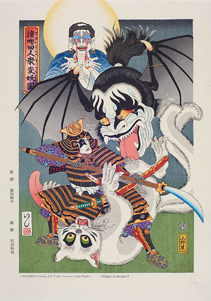 - Megumi Ōishi, KISS VS MCZ Ukiyo-e, Tokyo, 2015 Woodblock print © UKIYO-E PROJECT