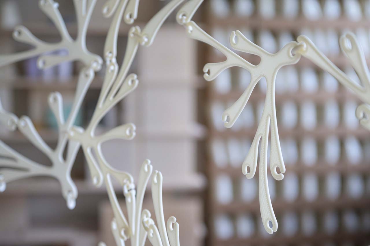- Vlasta Kubušová, Miroslav Král (crafting plastics! studio), Moritz Maria Karl (Office MMK) Breathe IN / Breathe OUT, 2021 3D printed 100 % biobased and biodegradable polymer blend © Adam Šakový